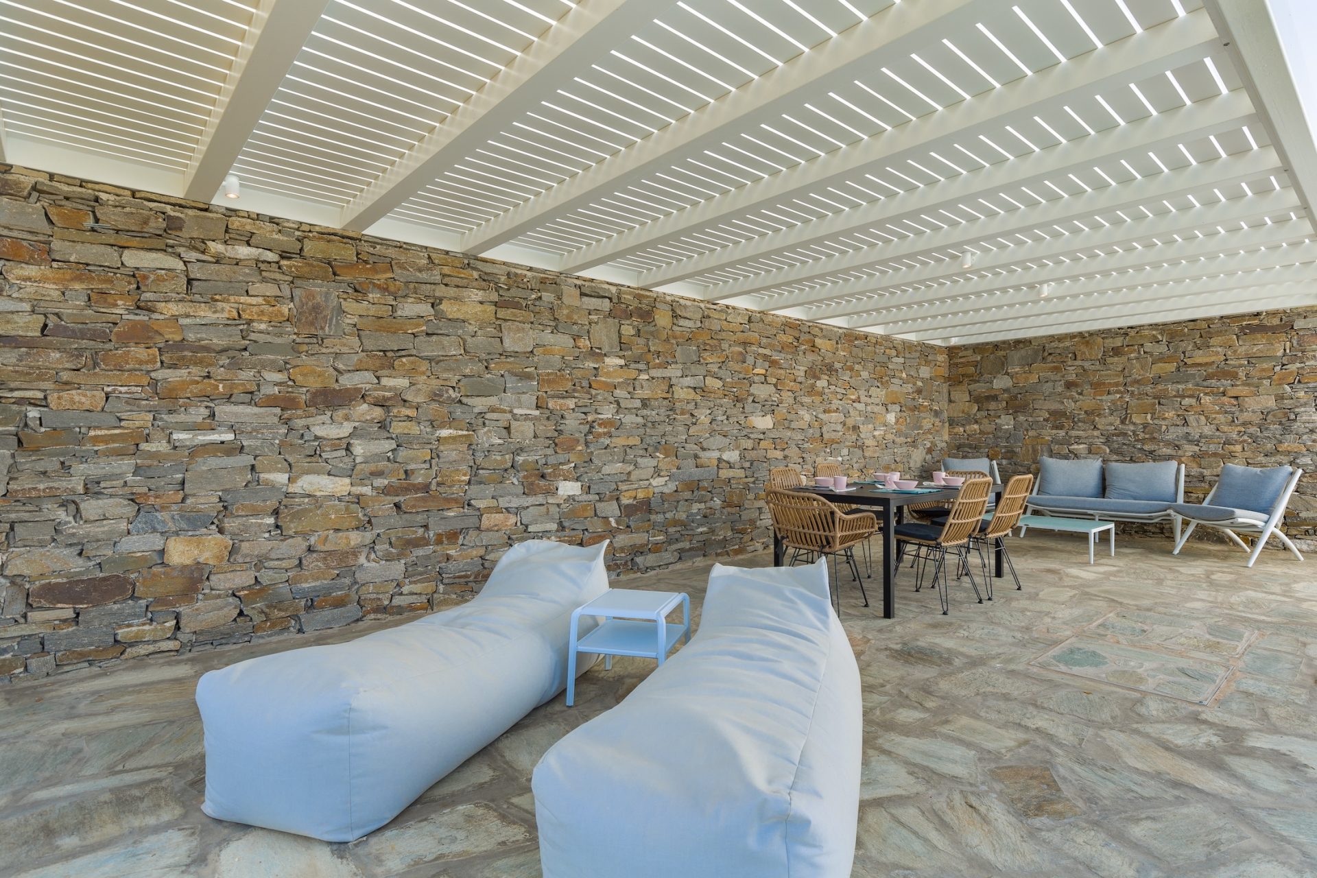 Optimum mattresses by Media Strom, fully equipped kitchen for preparing meals, Smart TV with a wide selection of channels for adults and children, indoor and outdoor dining with a pergola for all hours of the day and night, indoor and outdoor ambient lighting, private swimming pool with comfortable sunbeds, and a private parking area. Villa 3 has everything you dreamed of for a holiday home in cosmopolitan Paros and more. In Villa 3, you are in the seat of hospitality because it was designed to embrace the visitor who seeks a high-quality vacation, relaxation and fun, privacy and entertainment at all hours of the day or night.